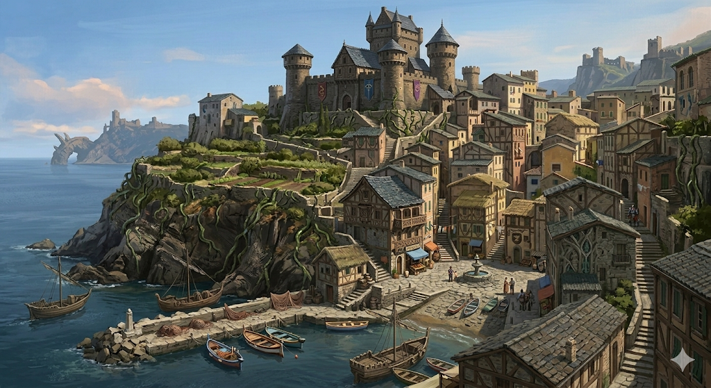 Derva è un minuscolo villaggio di catapecchie in legno stagionato e pietra lavica, aggrappato con disperazione a una scogliera sferzata dai venti nel remoto sud-est di Etra. Con una popolazione che a stento supera le cinquanta anime, non possiede le mura maestose di 🐲 Nuova Brigadail né gli specchi inquisitori di 🪞 Mindossa. Il suo unico e insormontabile scudo è invisibile: un’ampia e naturale zona di interdizione arcana che avvolge l’intero promontorio e le acque circostanti. Qui, i filamenti del Velo tacciono e le fiamme magiche si estinguono prima ancora di nascere.